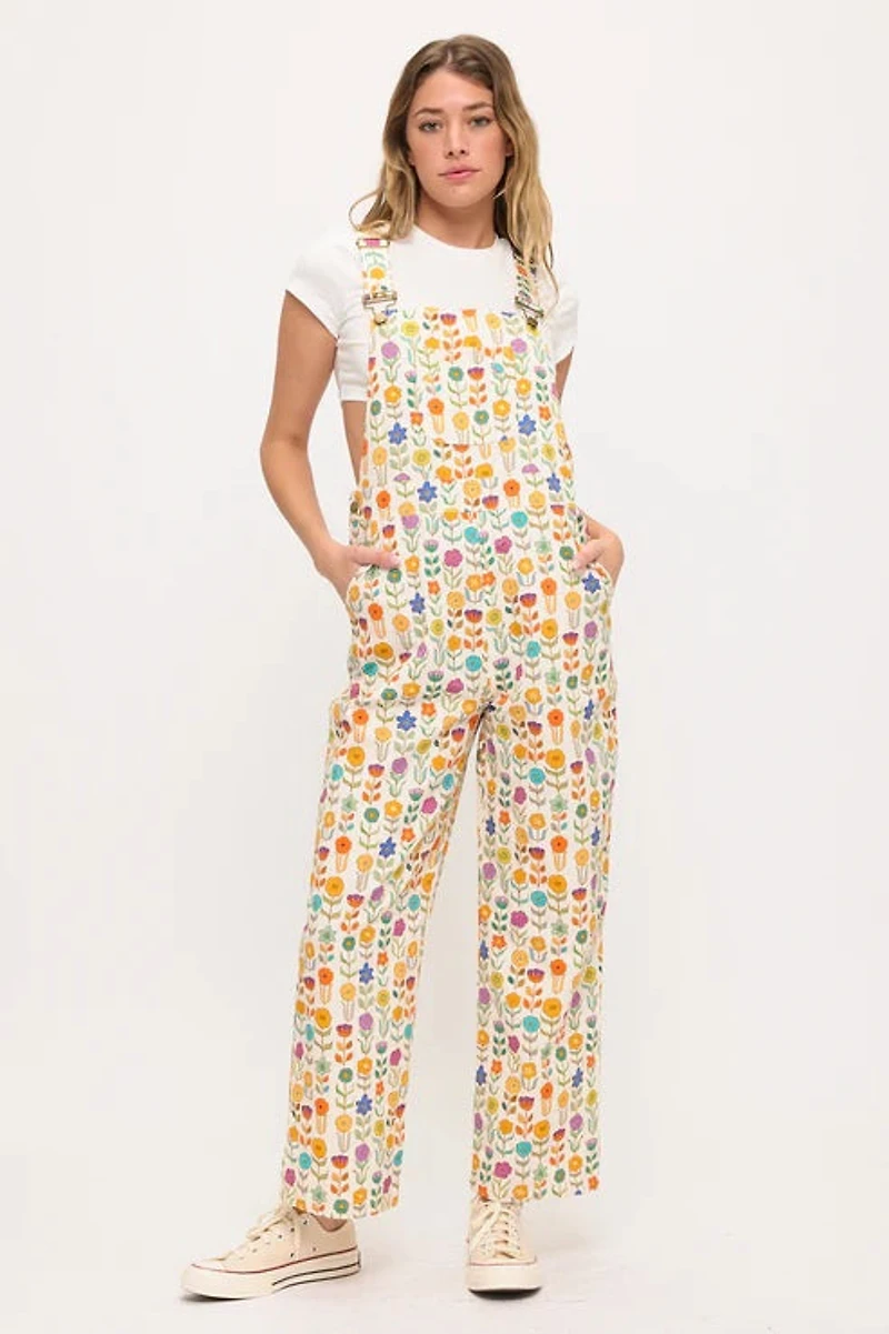 Retro Mod Floral Print OverallsAdjustable StrapsSide Pockets100% Cotton