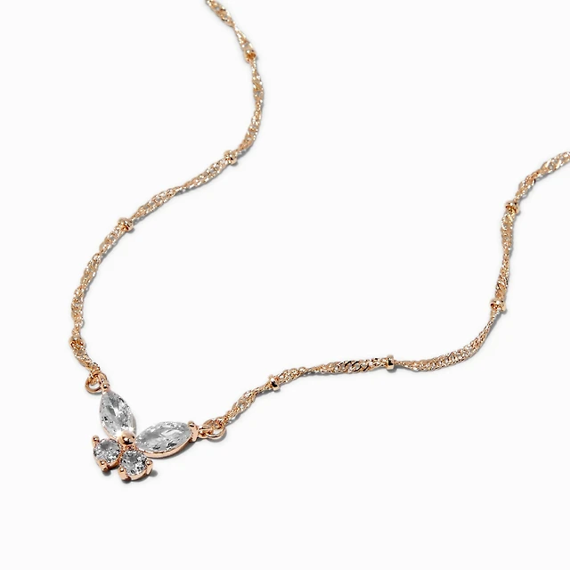 Rose Gold-tone Cubic Zirconia Butterfly Pendant Necklace