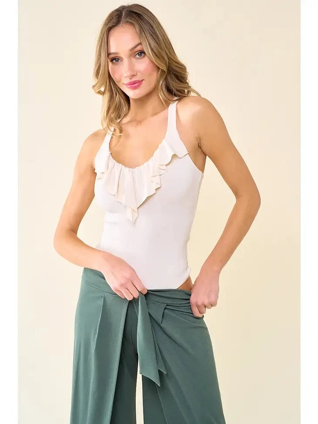 Babydoll Super Soft Slub Ruffle Shoulder Tank