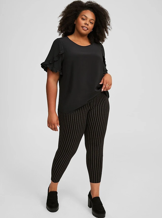 Ruffle Trim Blouse & Rhinestone Detail Straight Leg Jeans