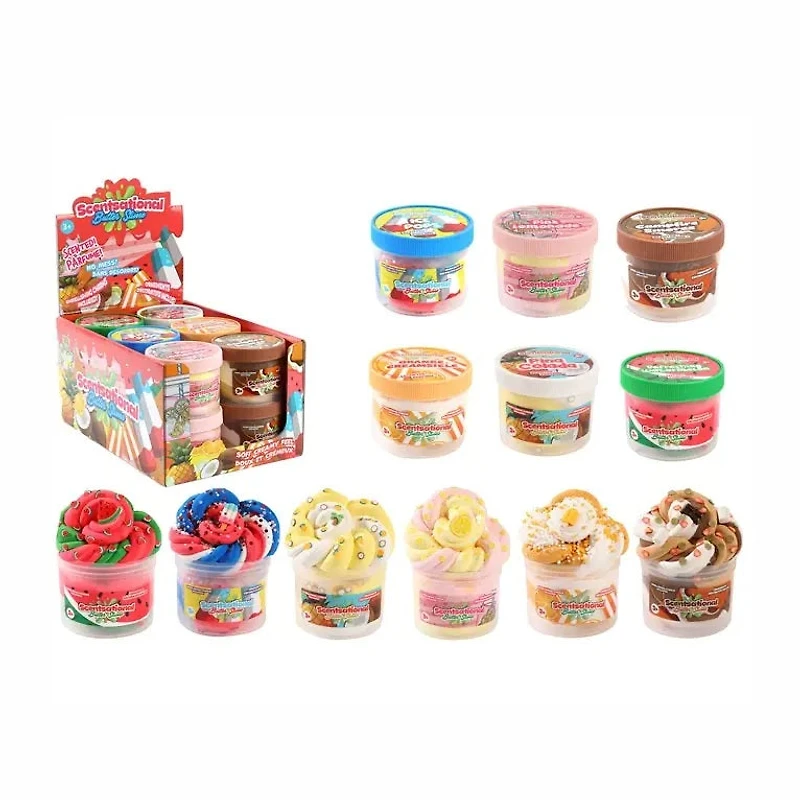 Scentsational Butter Slime - Summer SeriesLids Are Listed As The ColoursAssorted ColoursScents - Ice Pops, Campfire S'mores, Pina Colada, Juicy Watermelon, Pink Lemonade And Orange CreamsicleNon Toxic No Mess EverDO NOT EAT!!Made In China