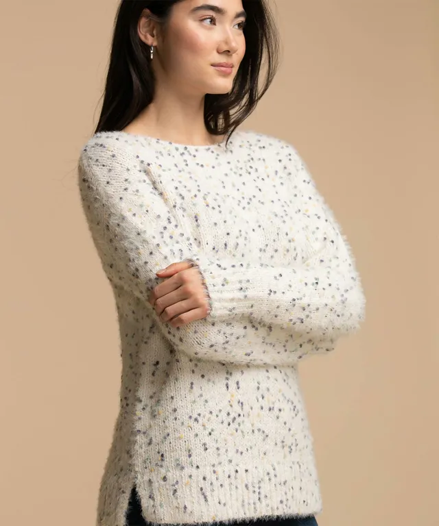 Polka Dot Scoop-Neck 3/4 Sleeve Sweater with Shirttail Hem