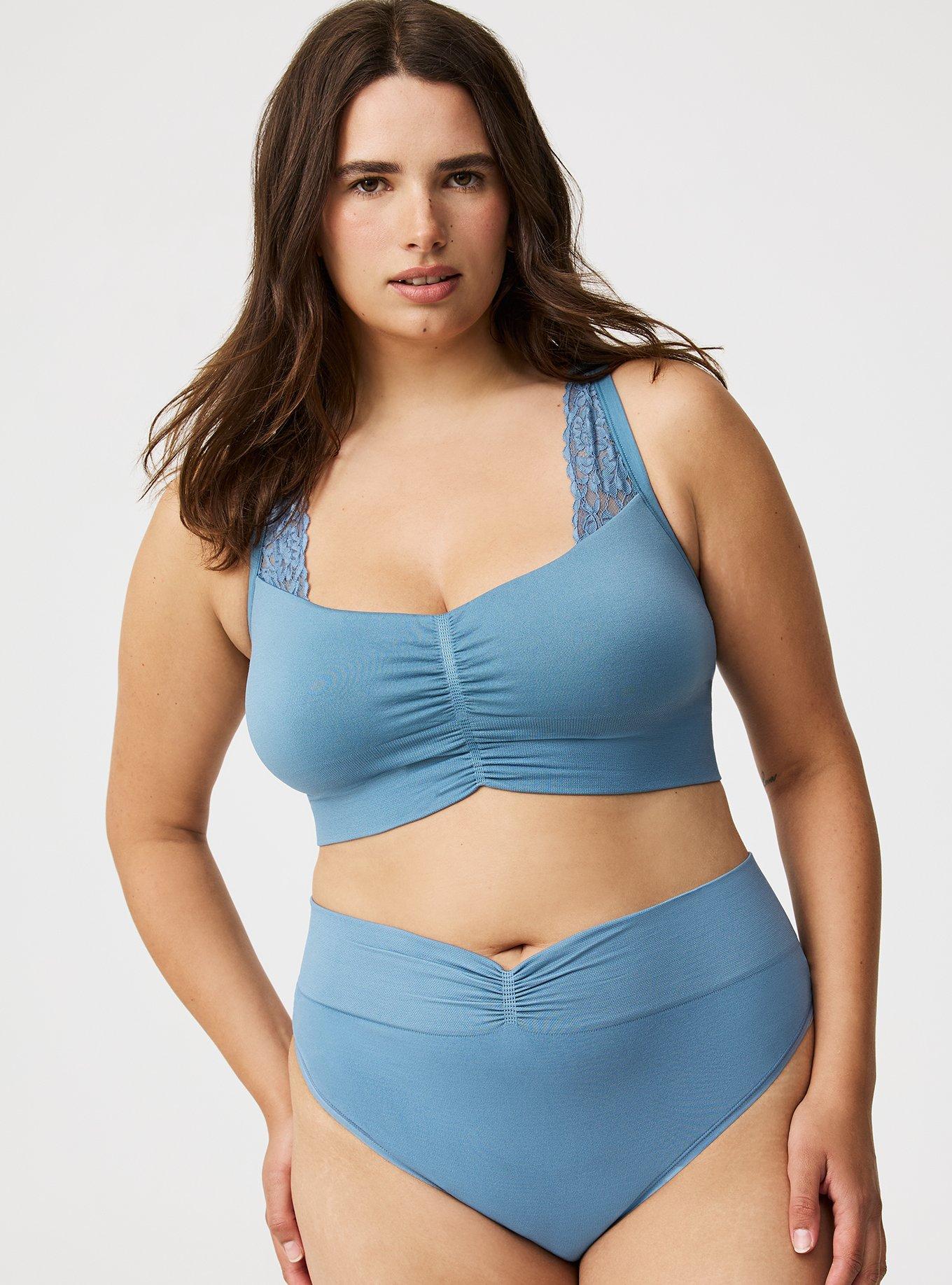 FIT High-rise. Thong back coverage. MATERIALS + CARE Seamless smooth knit fabric. 95% nylon, 5% spandex. Machine wash cold. Dry flat. Imported. DETAILS Ruched front.