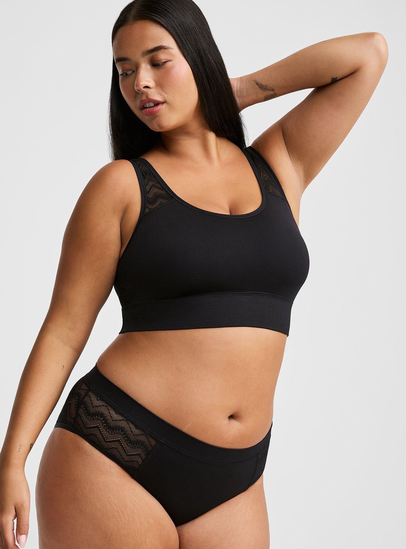 Matching style(s): Search 42535260 FIT Mid rise. Medium coverage. MATERIALS + CARE 94% nylon, 5% spandex, 1% cotton. Wash cold; dry flat. Imported. DETAILS Lace accents.