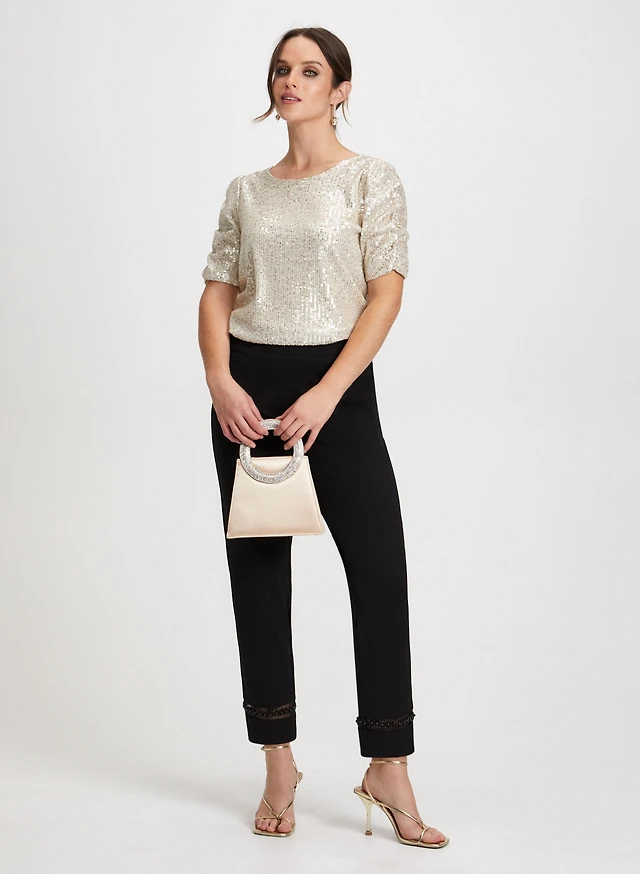 Shirred Sleeve Sequin Top & Bow Detail Pants
