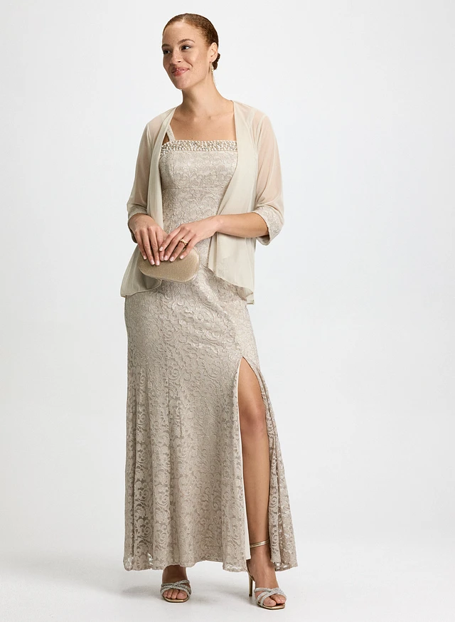 Sequin Clutch & Sheer Bolero & Sleeveless Dress Set