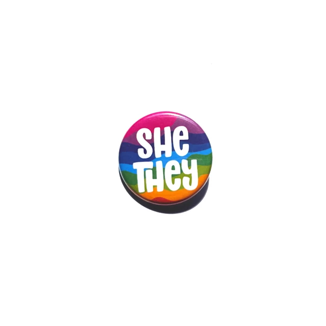 They She Pronoun Pin Black and White 1.25" Button Badge