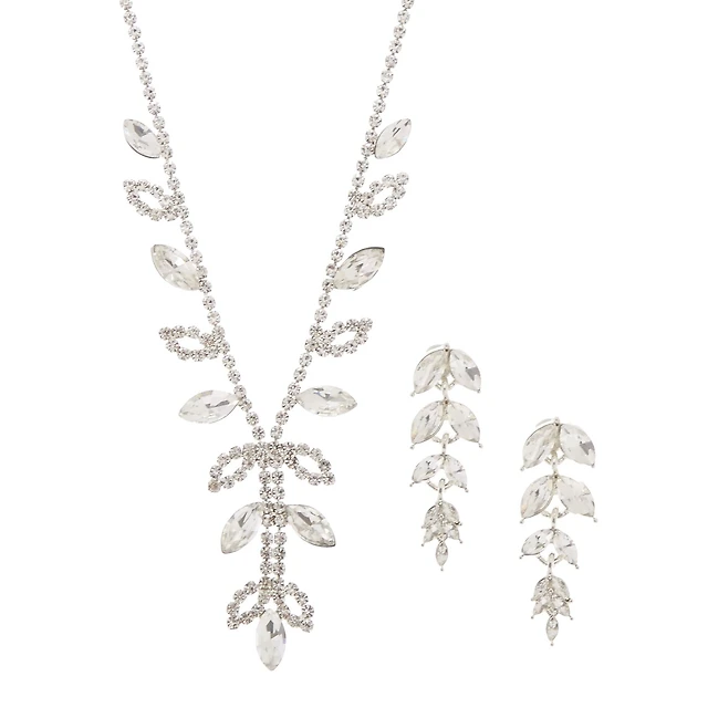 Silver Iris & Leaf Necklace & Drop Earrings Set - 2 Pack