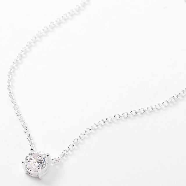Silver-tone Cubic Zirconia 6mm Pendant Necklace