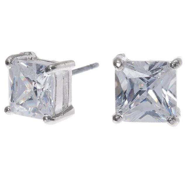 Silver-tone Cubic Zirconia 7mm Square Stud Earrings