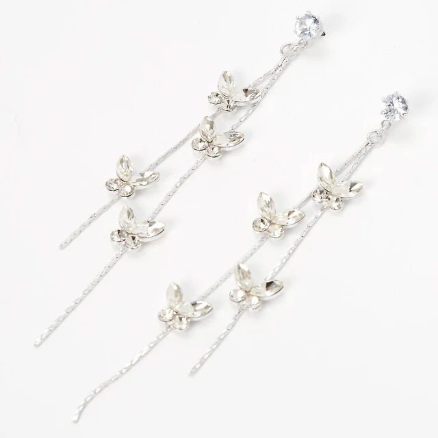 Silver-tone Cubic Zirconia Butterflies Linear Drop Earrings