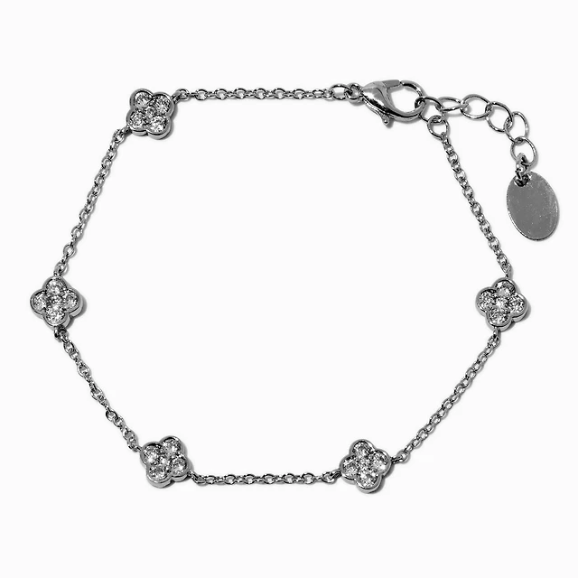 Silver-tone Cubic Zirconia Clover Chain Bracelet