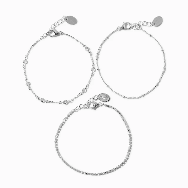 Silver-tone Cubic Zirconia Confetti Chain Bracelets- 3 Pack