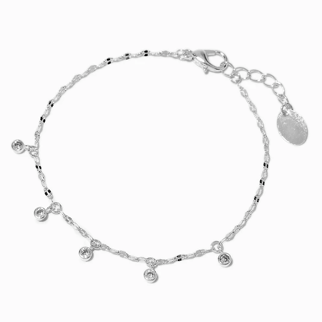 Silver-tone Cubic Zirconia Dainty Confetti Charm Bracelet