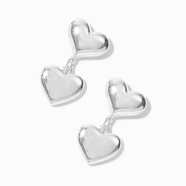 Ardene Double Heart Drop Earrings in Silver | Stainless Steel