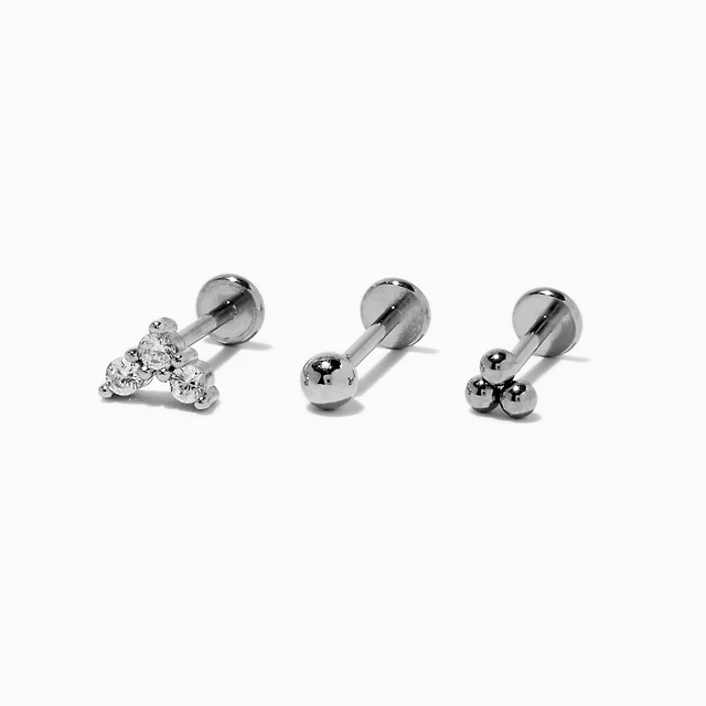 Silver-tone Stainless Steel 18G Stud Threadless Cartilage Earrings - 3 Pack