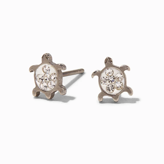 Silver-tone Titanium Crystal Turtle Stud Earrings