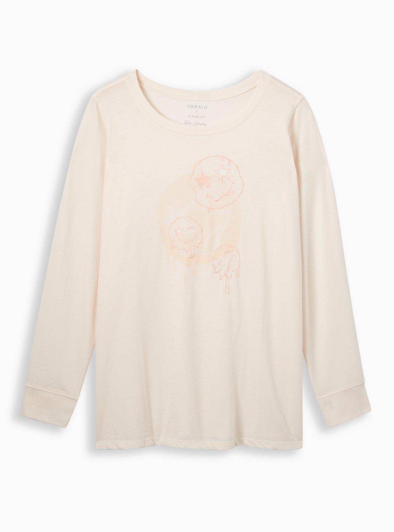 Smiley Doodles Classic Fit Signature Jersey Crew Neck Long Sleeve Embroidery Tee