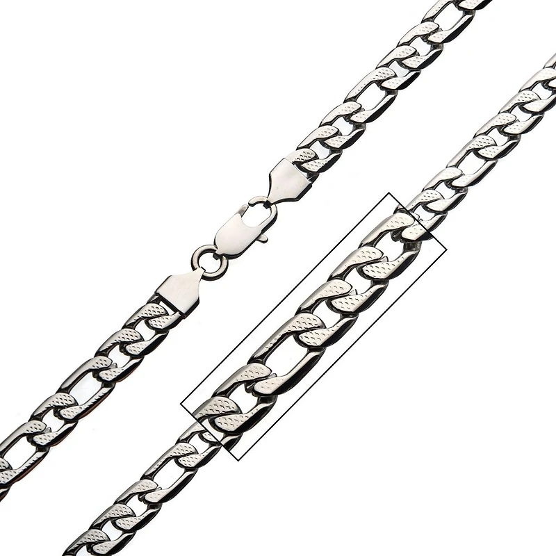 Stainless Steel 7mm Polished Speckled Pattern Figaro Necklace.