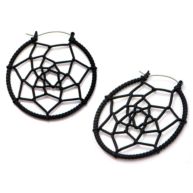 Black Plated Spiderweb with Dangle Spider Plug Hangers