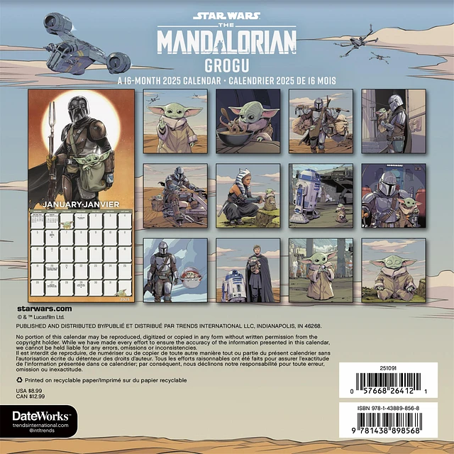 Star Wars Mandalorian Grogu Bilingual 2026 Wall Calendar