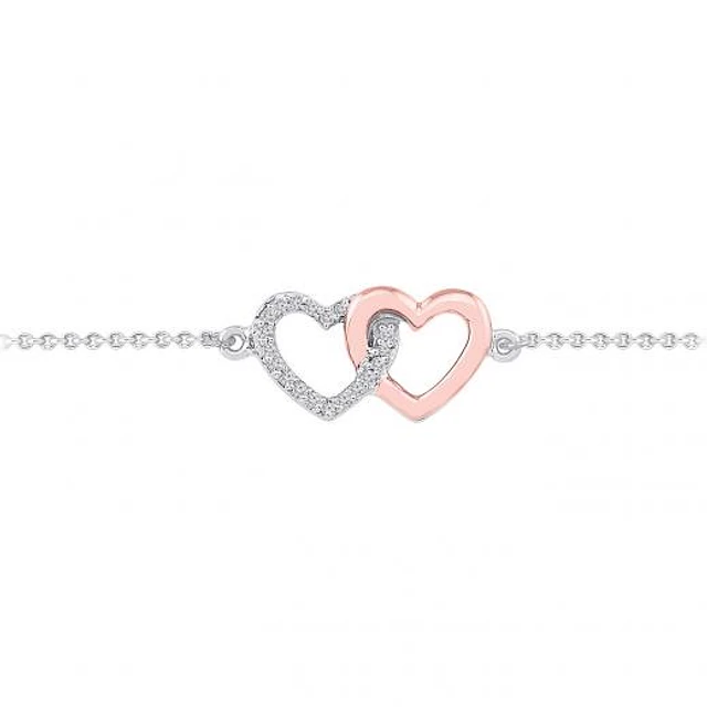 Sterling Silver 10K Rose Gold Diamond Heart Bracelet