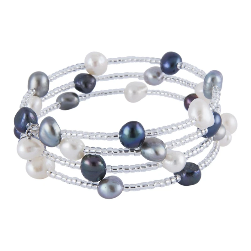 Sterling Silver 6-7mm Multiple Row Coil Freshwater Pearl Bracelet