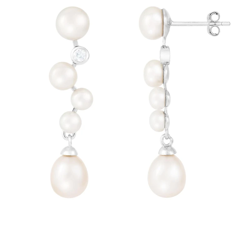 Sterling Silver 6-8mm Pearl & Cubic Zirconia Earrings