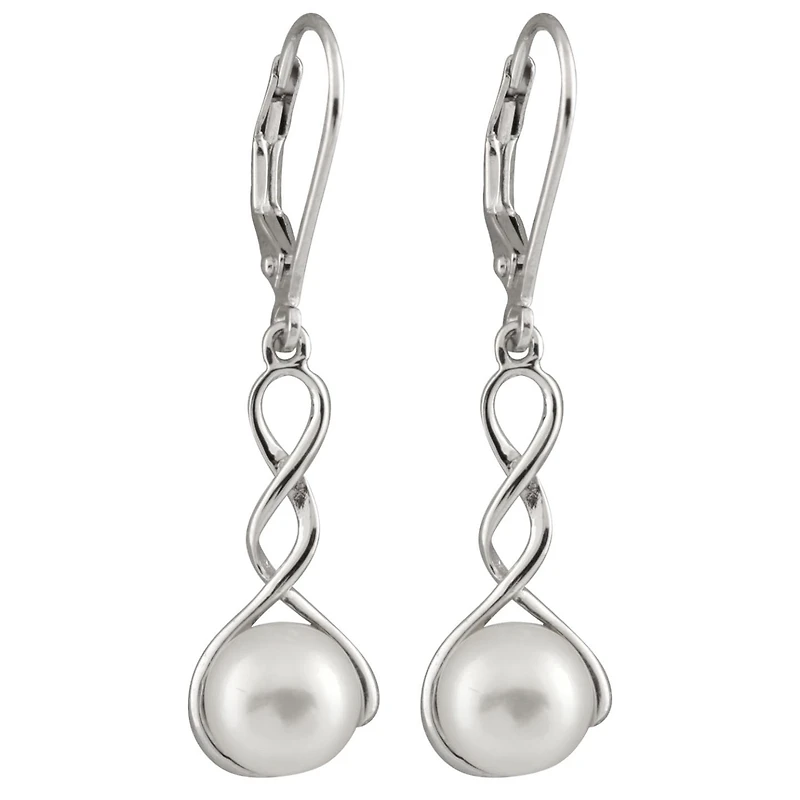 Sterling Silver 7.5-8mm Dangling Leverback Pearl Earrings