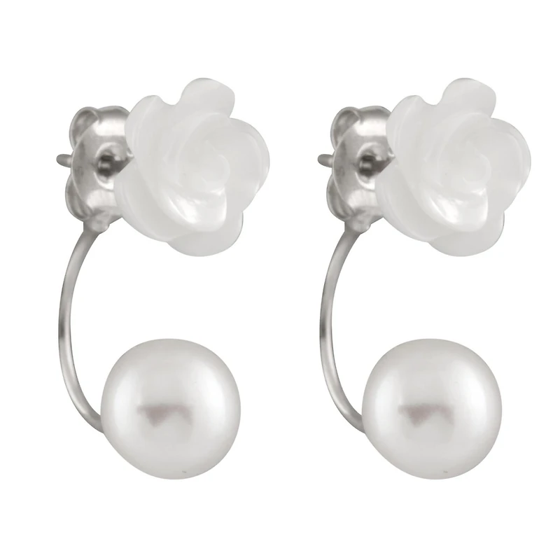 Sterling Silver 9-10mm Freshwater Pearls and 10mm Mother of Pearl Earrings
