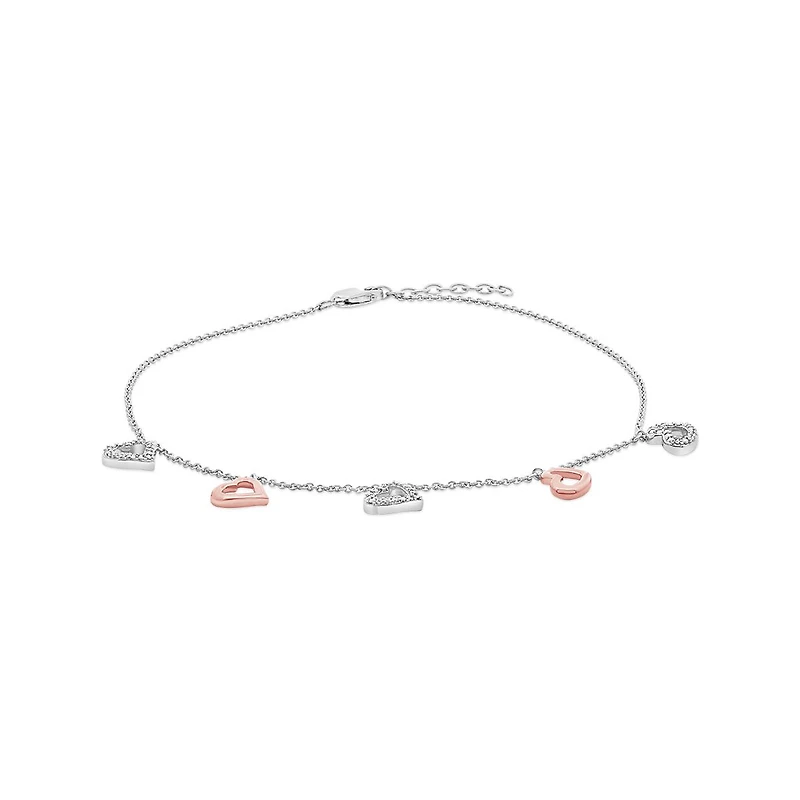 Sterling Silver and 10K Rose Gold Diamond Heart Ankle Bracelet
