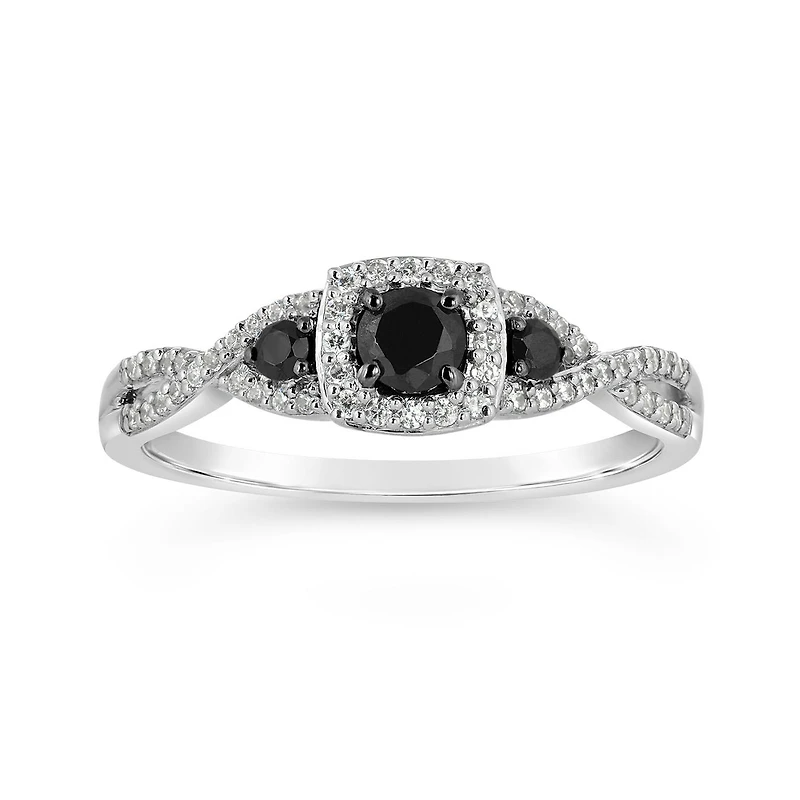 Sterling Silver Black & White 0.45CTW Diamond Promise Ring