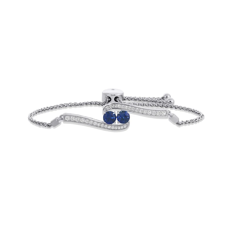Sterling Silver Created Blue & Created White Sapphire Bolo Bracelet
