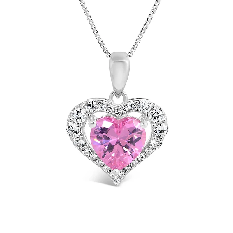 Sterling Silver Created Pink & Created White Sapphire Heart Pendant