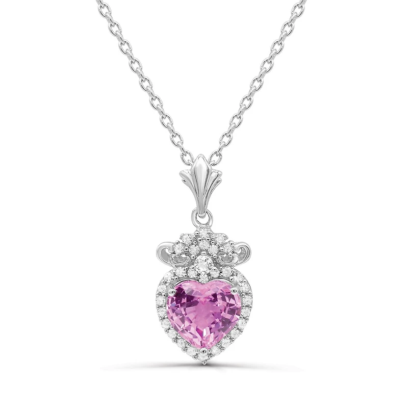 This gorgeous sterling silver fashion pendant features a created pink sapphire heart centre stone crowned by dazzling created white sapphires. The perfect everyday piece for your jewellery collection. Buy it for yourself or for that special someone in your life.