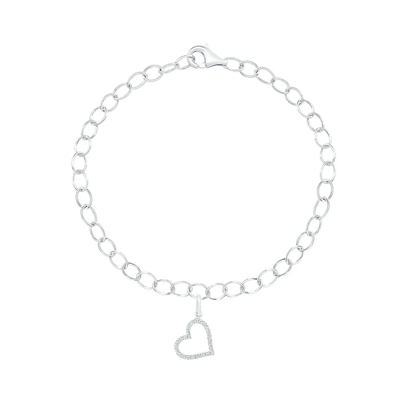 Sterling Silver Diamond Heart Charm Bracelet