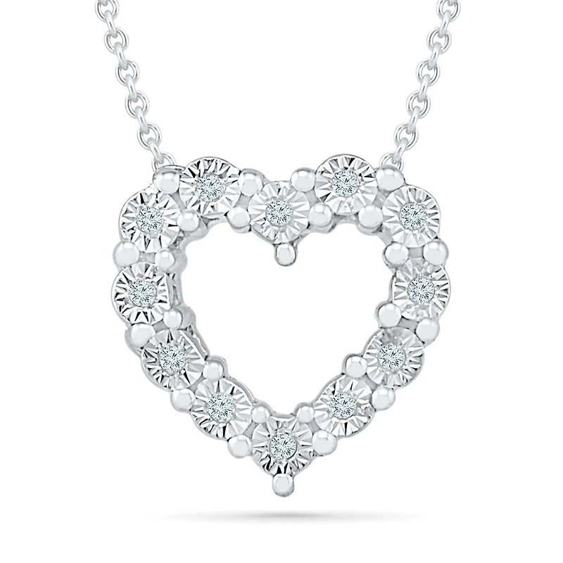 Illusion set diamond accents adorn this adorable heart pendant. Suspended from a 17" sterling silver cable chain, which has a 4" extender, this pendant can be worn close to her heart.