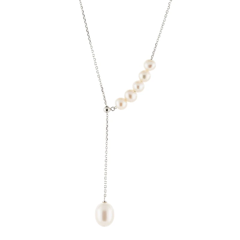 Stand out from the crowd with this glistening sterling silver pearl necklace. Featuring lustrous white freshwater pearls, this pendant has a special silver silicone bead that makes it adjustable so you can wear ii at different lengths. This versatile necklace is sure to become a favourite in your jewellery collection.