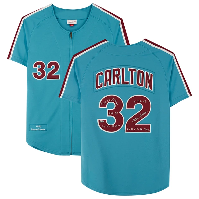 Steve Carlton Philadelphia Phillies Autographed Light Blue Mitchell & Ness Authentic Jersey with Career Stats Inscription - Limited Edition of 32