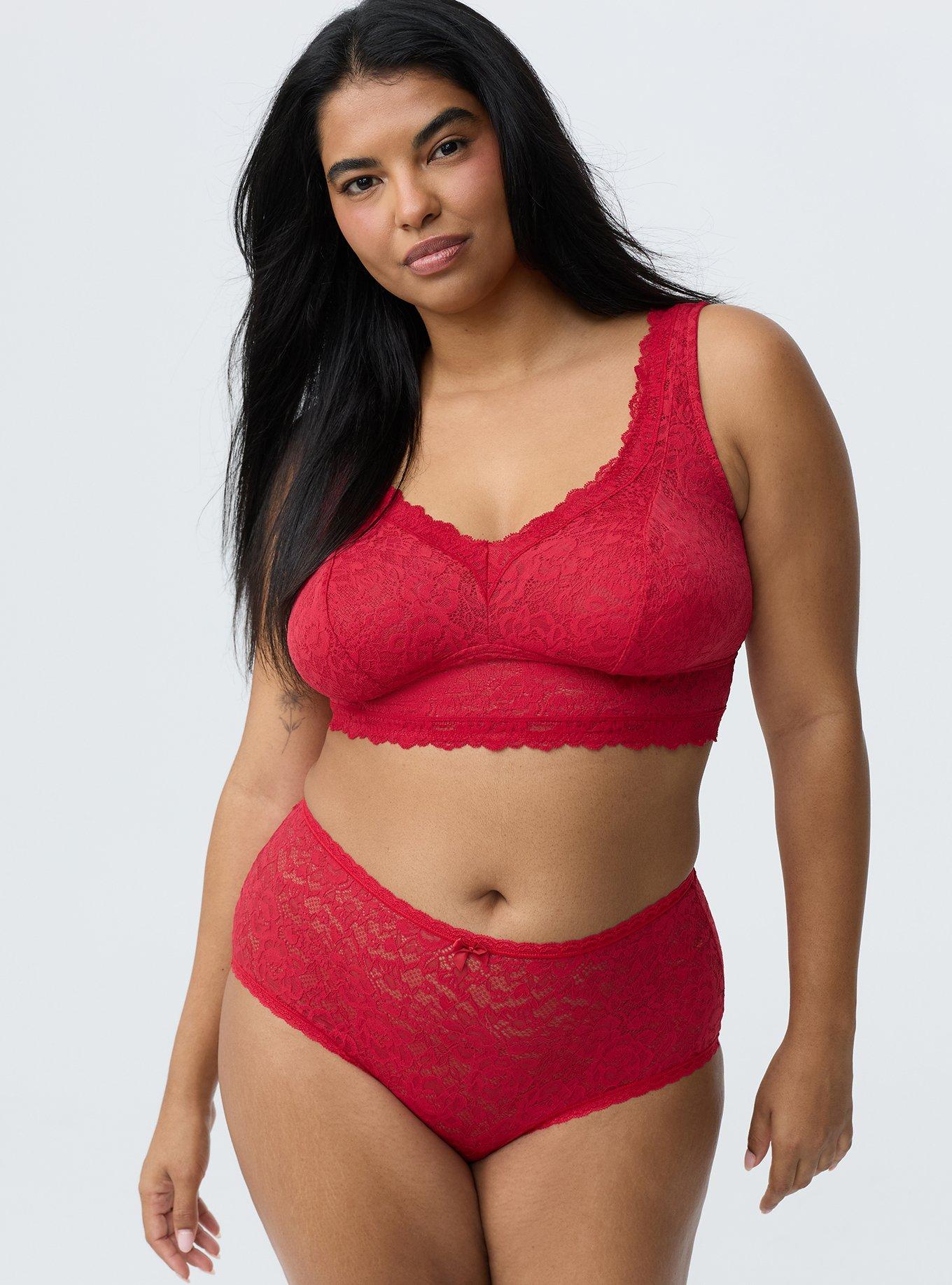 FIT Mid-rise. Brief back coverage. MATERIALS + CARE Super Soft Lace knit fabric. 87% nylon, 13% spandex. Machine wash cold. Dry flat. Imported. DETAILS Elastic waist. Bow detail. Lace back.