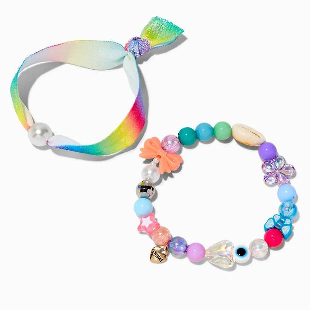T H E M E x Claire's Beaded Mixed Media Bracelet Set - 2 Pack