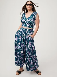 FIT Top measures 19"" long. Whole set measures 56"" from shoulder (size 2). MATERIALS + CARE Super Soft Jersey knit fabric: An incredibly soft, versatile knit that hugs close to the body. Stretch level: Maximum. 95% rayon, 5% spandex. Machine wash cold. Line dry. Imported. DETAILS V-shaped neckline. Sleeveless. Drawstring detail at shoulders. Top is cropped. Tiered maxi skirt with functional pockets.