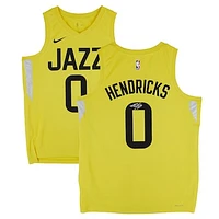 Elevate your collection of Utah Jazz memorabilia by picking up this Taylor Hendricks autographed Nike Gold Icon Swingman Jersey. Featuring a striking signature from the Utah Jazz star, it's a must-have addition for any die-hard fan or serious collector. This collectible also includes an individually numbered, tamper-evident hologram that can be verified online to certify its authenticity.