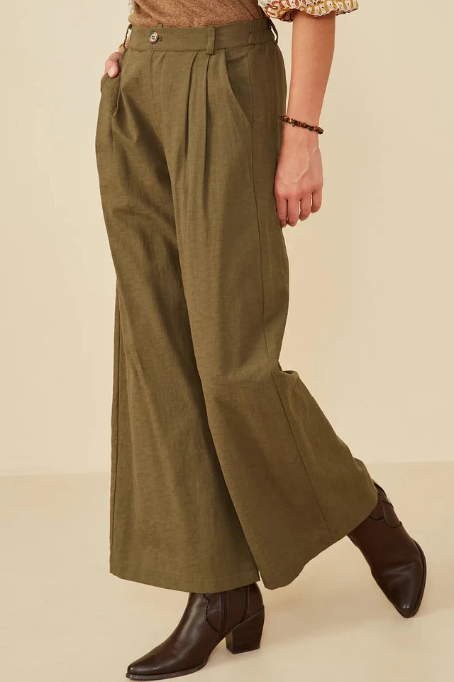 Crinkle Foil Knit Top & Button Detail Wide-Leg Pants