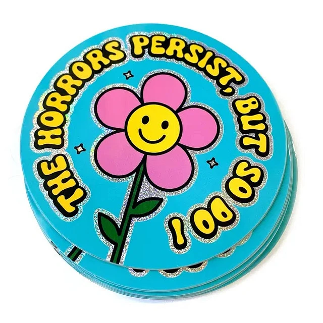 The Horrors Persist, But So Do I Holographic Glitter Sticker