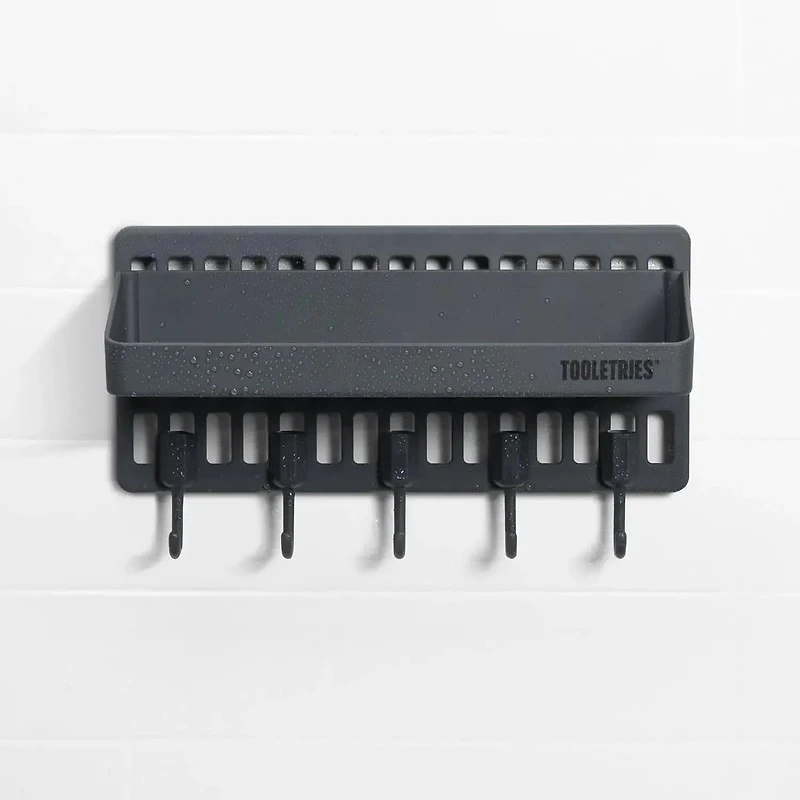 Tooletries The Tool Wall Shower Caddy transforms your shower into a streamlined grooming station built for efficiency and control. Engineered with a low profile build and five durable hooks, it secures up to 10lbs of essentials while keeping everything dry, organized, and within reach.