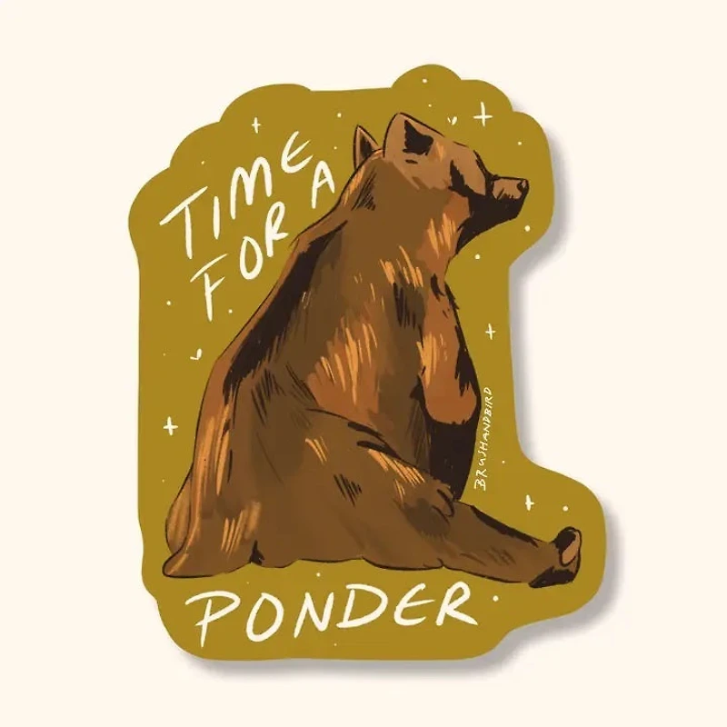 Time For A Ponder Grizzly Bear Sticker Waterproof And Dishwasher SafeFade And Scratch ResistantMade And Printed In Canada