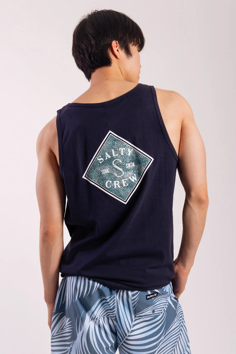 Be a part of something bigger with the Tippet Fill Tank from Salty Crew. Take on the waves, adventure, and life in style with this classic tank. Make a statement and set yourself apart. Men's crewneck tank Regular fit Chest and back screen print 100% cotton Model is wearing a size M