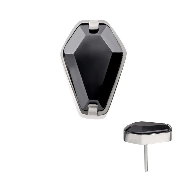 Titanium Threadless with Prong Set Black CZ Coffin Top
