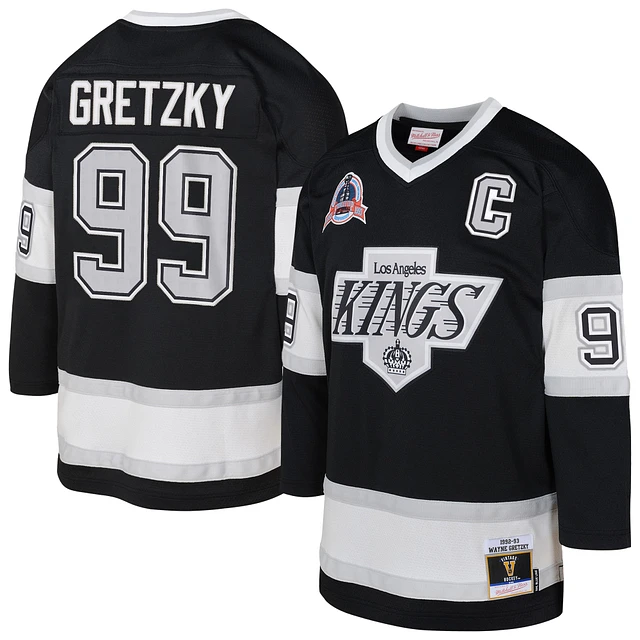 Youth Mitchell & Ness Wayne Gretzky Black Los Angeles Kings 1992/93 Captain Patch Power Play Player Jersey